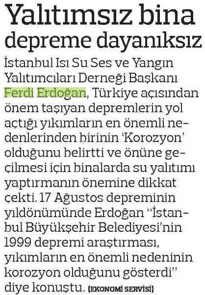 Su yalıtımı suyun yapıya intikalinin engellenmesi i&cc